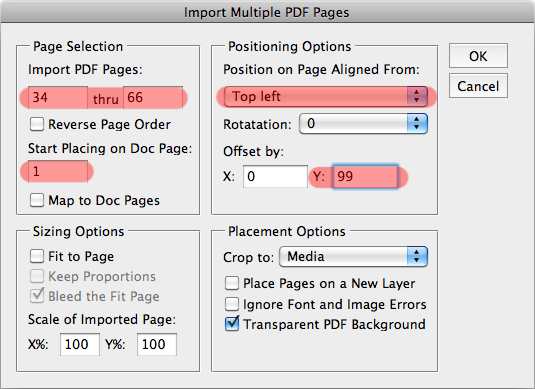 5) Click OK. the script will run and now place the next third of results in the second third of the sheet. Once again, double-click the multipageimporter.jsx and put in the following: