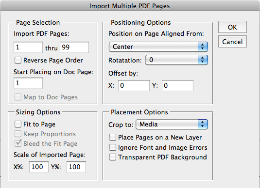 The PlaceMultipagePDF has been made quite obsolete by a much better script by Scott Zanelli called MultiPageImporter.jsx which not only imports PDFs but also allows page rotation, scaling, offsets, reverse page order… it’s massive! This script is one which is so good it even has its own manual. More information on the script can be downloaded here.