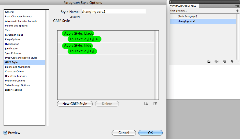 - GREP styles