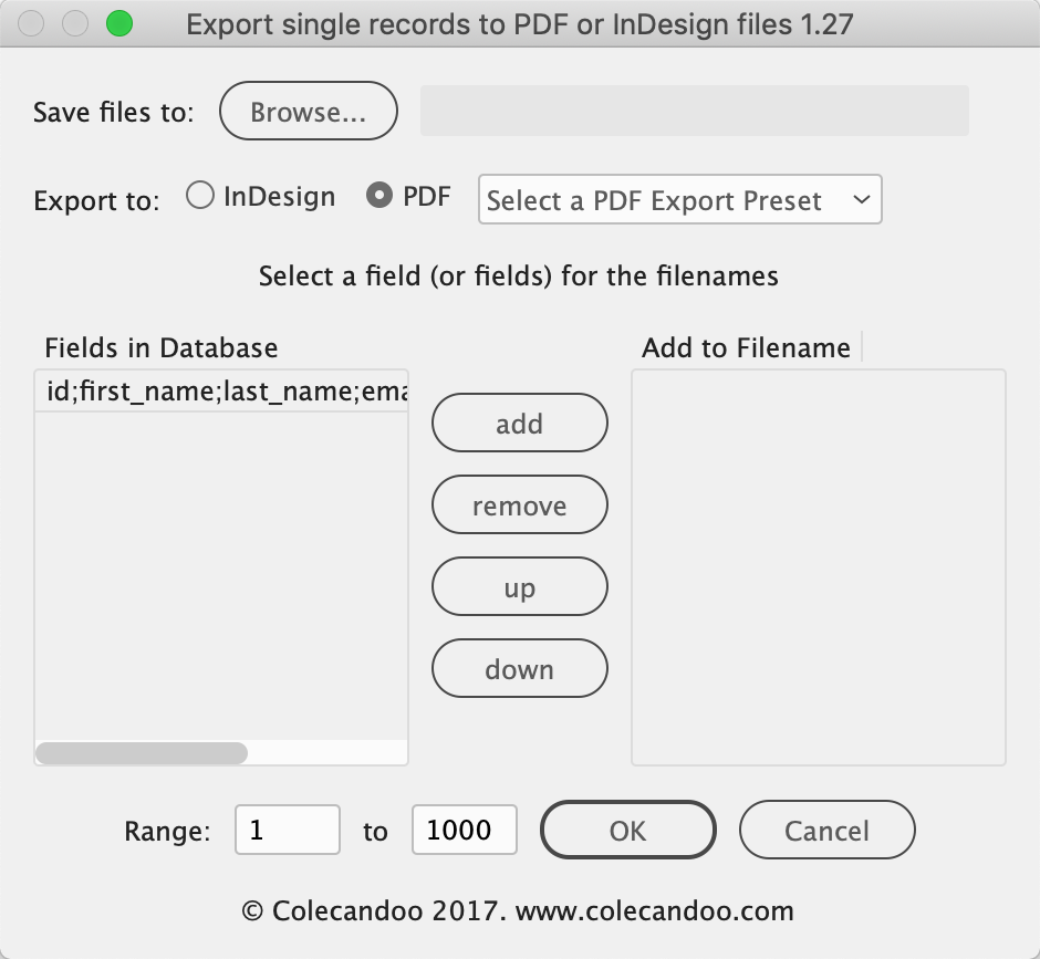 The emails were consistent in nature – users had downloaded the data merge single or pro script and ran the script on files they had prepared. Instead of users being able to select from the fields to the left, all of the fields appeared in one line.